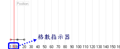 現在要如何要選擇「關鍵畫格」或「一般畫格」? 有 3 種操作方法: 1. 一種是利用鍵盤方向鍵,<<←>>、<<→>>是往前或往後移動格數;<<↑>>、<<↓>>是前一個或後一個「關鍵畫格」。 2. 另一種是在「圖示視窗」中直接拖曳「格數指示器」,如圖 3。