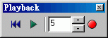3. 還有一種方式為播放工具列的「格數控制器」,如圖 4。 3. 如何增加「關鍵畫格」如果想將「一般畫格」變成「關鍵畫格」,要如何完成?假使在第 5 格中我們加一「關鍵畫格」,如圖 5,有 2 種方式可完成: