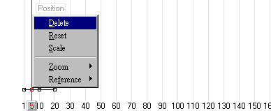 4. 如何刪除「關鍵畫格」「關鍵畫格」要如何刪除?「圖示視窗」中,在小方格﹙「關鍵畫格」以方格形狀呈現﹚中按滑鼠右鍵,會彈出快顯功能表,然後選擇 "Delete"。﹙圖 8﹚
