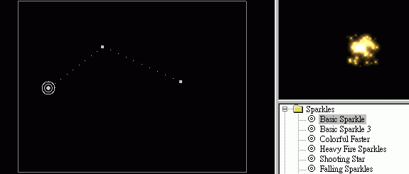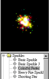 7. 如何更換具有路徑的Emitter辛苦建立好路徑後,發現選擇其他Emitter效果更好;如何路徑不變前題下,異動Emitter? 範例中使用的 Emitter 是 "Basic Sparkle",我們換成 "Colorful Faster"。﹙圖14﹚