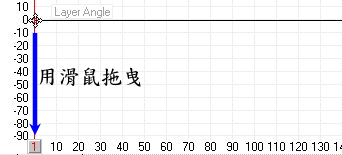 3. 本例中我們將Angle調整為"-90",您可以在「舞台視窗」中利用滑鼠拖曳,或在「圖示視窗」中拖曳均可,如圖 25、26。