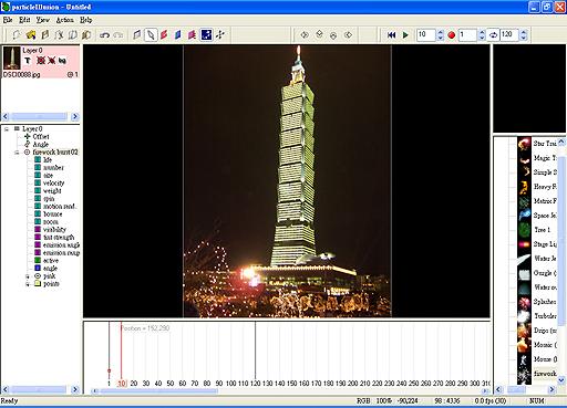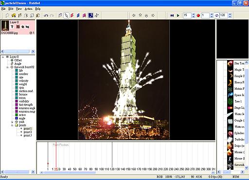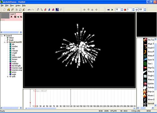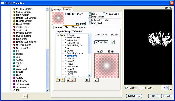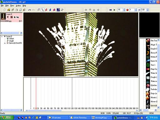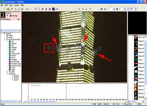 10. 連續噴發的效果。在這個範例中,選擇一個適當的型態,調整屬性與畫面契合,稍微設定一下參數,很輕易的就完成這樣一個精采特效製作。