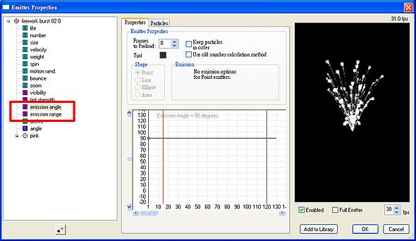 2. 因為這組 Super Emitter 是向四面八方發射的,所以先要從屬性面板中調整噴射範圍