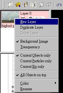 Layer1 加入新圖層在圖 5 的畫面中看起來感覺像是隕石掉在飛機的前方,因為隕石與爆炸的 Emitter 都將飛機遮住了,所以我們要加上新的圖層,疊在 Layer0 的上方。 6. 在 particleIllusion 的左上角按下滑鼠右鍵,並從快顯清單中選擇 New Layer,如圖 6,新加入的圖層為 Layer1。