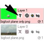 10. 若此時看到 Layer1 的背景影像還是綠色的話,點一下 Layer1 上“T”圖示,如圖 10,原本有一個“X”的話,表示不開啟透明度,反之可開啟透明度。