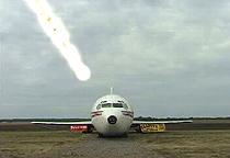 12. 目前 Layer1 的影像中的飛機已經完全的遮住 Layer0 了,此時可以在 Layer1 上加入一些連鎖爆炸的效果,別擔心製作預算的問題,誇張一點無所謂,圖 12-17。