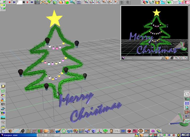名稱: Merry Christmas 說明: 使用 trueSpace6.5 中文版 + Hair + 光暈效果外掛所製作的的聖誕卡片。 trueSpace 場景