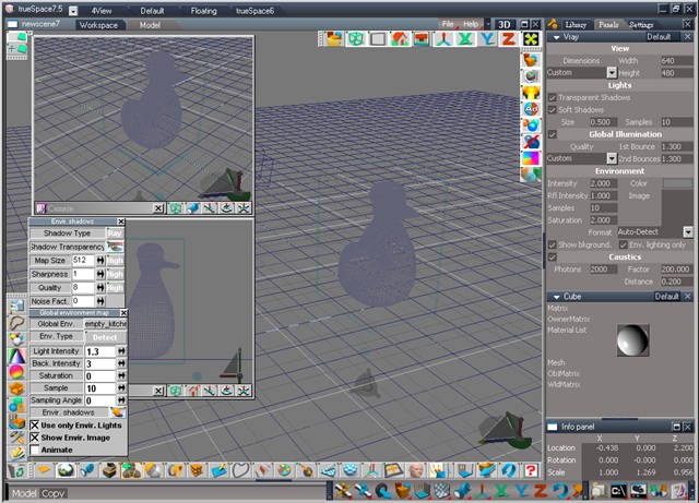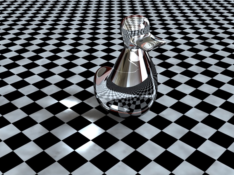 名稱:鴨子-2 製作軟體:trueSpace7.5 說明: trueSpace7.5的V-Ray讓玻璃材質的折射與反射更加的漂亮,雖然這是個練習的作品,但效果出奇的好。