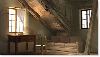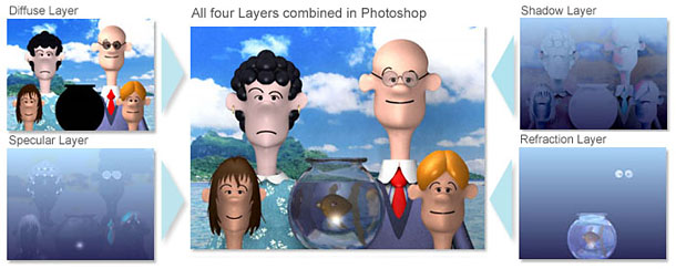 本著色引擎可完美的與 trueSpace7 結合,同樣的提供全域照明 (Global Illumination) 的著色效果,以及苛蝕 (caustics) 的反射與聚焦效果。 |