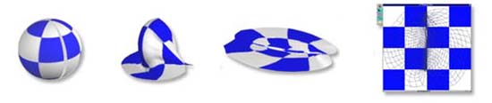 動態展開網面,伸展為多邊形網面為一平面,如同皮膚一般。