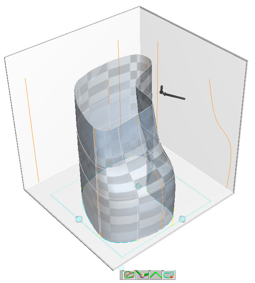 三視板: NURBS 曲線擠壓成型後,可以根據三個不同角度,編輯擠壓成型的軌跡曲線。