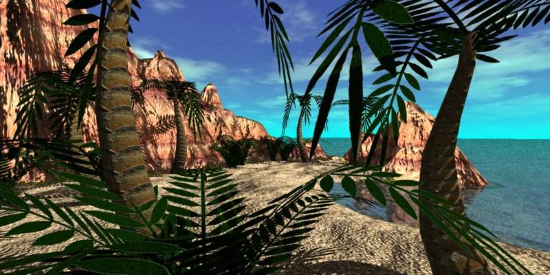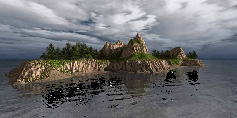 trueSpace2 及 3)。從地形、樹木、岩石、大氣層及海洋的模型及貼圖材質的產生,燈光及攝影機的建立,完全由