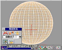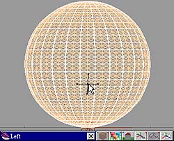 4. 接著在Left視窗中,圓球的中心再下來一點的地方按一下滑鼠,如圖5,在雕