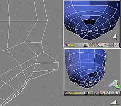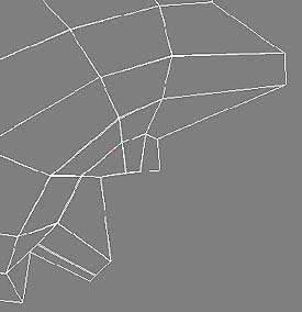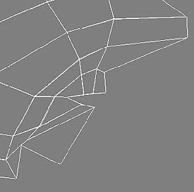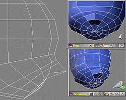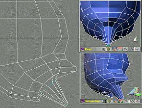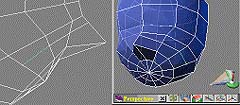 要在鼻梁上多增加多邊形面 (圖14),所以依 (圖11) 的方法。結果如 (圖15)。
