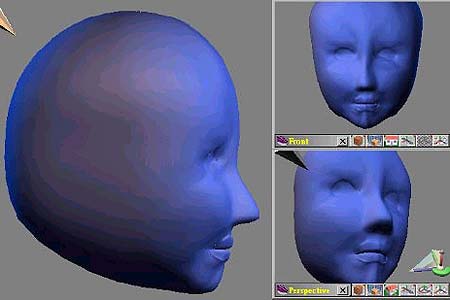 執行二次平滑四角等分物件看看,一對美美的眼睛是不是出現了呢?(圖40) 最後,反覆檢查不平順的地方和修改不合理的地方。像我覺的眼睛好像太深了,我將之往右移, 執行二次平滑四角等分物件後,有產生破面的,可以點繪製的新增邊線來增加多邊形數,這樣會 有較平滑的面出現。(圖41)
