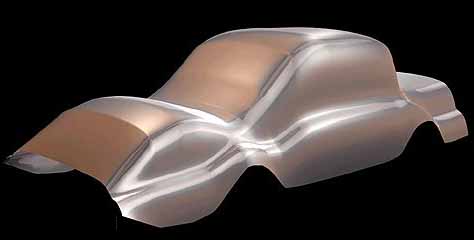 5. 參考上述的步驟建立第三條曲線,並與前二調曲線成垂直,如圖 5。此曲線讓車底的曲線,沿著並接合到車頂部的曲線。