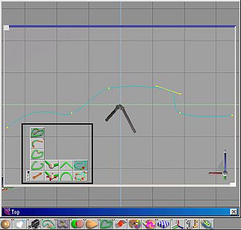 2. 使用【新增曲線 (Add Curve)】繪出車頂的曲線,如圖 2。按下【物件工具 (Object Tool)】,可退出曲線編輯模式。