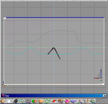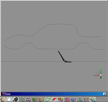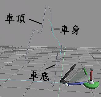 ※ 請注意 : trueSpace5 新的曲線功能,可以不需要按滑鼠右鍵來封閉曲線。 3. 重覆使用步驟 1&2,使用【新增曲線 (Add Curve)】繪出車底及擋泥板的曲線,如圖 3。