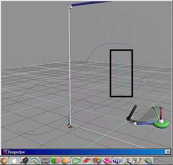 ※ 請注意 : 第一條曲線若是由左向右繪製的話,第二條曲線也必須循相同的方向繪製,否則在表面建立 (Skin) 的過程,會產生表面扭曲的情形。 4. 調整曲線的角度及位置,讓它從像畫面中前視圖的樣子,如圖 4。