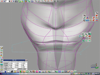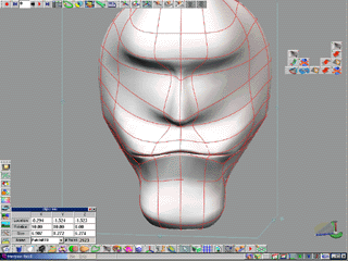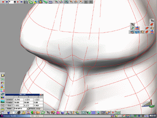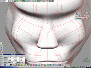 接著我們使用 Refine Patch 工具來增加曲線以便編輯出更細緻的造型,Refine Patch 的使用方法為選取物件當中的某一曲線,然後按一下 Refine Patch 圖示,然後在工作區按住滑鼠左鍵拖移不放,直到新增的曲線到達定位再放開滑鼠並停止拖移動作! 所以我們利用 Refine Patch 來新增下嘴唇的曲線,並編輯它,使下唇變的稍微厚一些,如圖(Pic13)所示!
