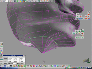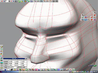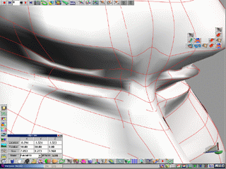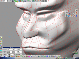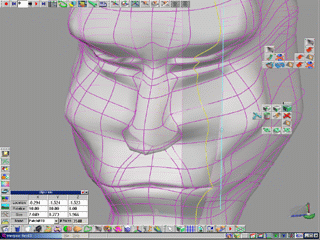在眼睛的部位使用 Refine Patch 新增幾條曲線,然後使用點編輯的方式稍微拉一下控制點,如圖(Pic21)所示,這次由於曲線之間的距離比較近,所以必須謹慎的調整控制點,以免造成不佳的效果.