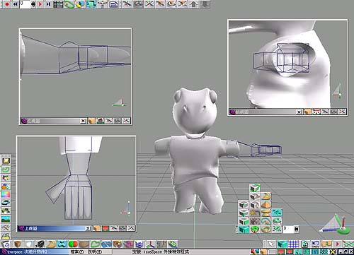 18. 建立一個縱節數5的圓柱體,將它壓扁,接著再將它拉長,再調整成類似腳的模樣 (如圖31)