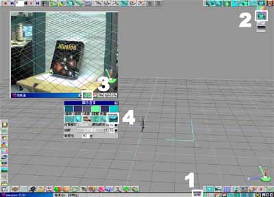 當我們製作的影像或畫面時,常常會面臨一個問題,你的陰影該如何重疊在背景影像上,尤其若是陰影投射在不規則的背景 (背景是平面的,但是內容物為凹凸起伏),常常會讓動畫師傷透腦筋。 現在位各位介紹一個好工具,這是 trueSpace5 反射度的新質感樣式 - 陰影捕捉 (Shadow Catcher),適用於 trueSpace5.1 版。 背景貼圖首先設定場景的背景貼圖,這部分因為有 trueSpace5 的新介面,我們來複習一下。先在場景中開啟一個新視窗,如圖1。