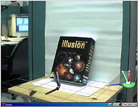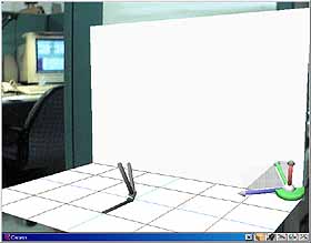 擺設後的畫面接下來我們擺設一塊平躺及直立的地面,分別代表桌子及隔板,作為陰影投射用。如圖4 |