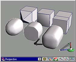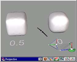 依照慣例,在此不準備解釋 Nurbs Object 的基本功能,因為製作有機生物只須研究 張力的影響和增加表面的方式,如圖 2,你可以很清楚的分辨出在張力 0 和 0.5 之 間的差異!