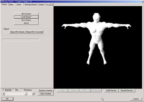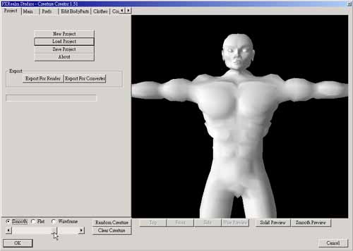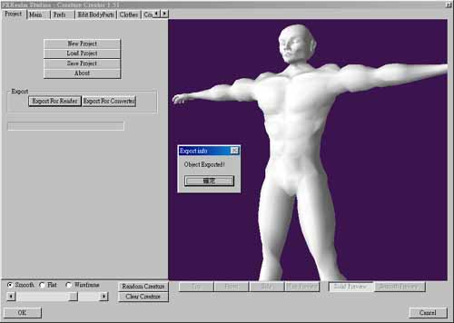 它有三種顯示模式,在下方有三個選項,Smooth、Flat、Wireframe,您可以分別按下他們來看看顯示結果。如果您想看看模型的全身,您可以拖曳下方的滑桿,它類似Zoom In/Zoom out 功能。