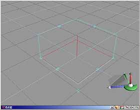 2. Emitter 物件在 trueSpace 工作區中所看到的外觀都應該如圖 29 所示,所有 PPFX 的emitter 是以紅色線架構呈現;emitter 本身是一個虛無﹙Null﹚的物件,在著色時也無法看到;請觀察在 emitter 正中央有一個朝上的線段,這表示 emitter 是朝上方噴出。