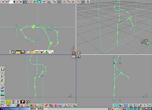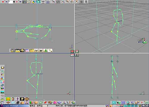 前言aniPak 中的 PoseMixer 可以讓你自訂動作姿勢的資料庫,跟 Life Forms 中的選取板 (Palette) 類似,Poser 中也有類似的設計。選定動作後設定關鍵畫格,然後在另一時間點設定姿勢與關鍵畫格,動畫就會自動的從這個姿勢到另一個姿勢。 但是 PoseMixer 更方便的是 - 非線性的動作編輯。其所有的動作可以用滑桿的方式調整其運動幅度,並且可以選擇作用的關節,在後面我們將說明此點。 PoseMixer 這對於人物的運動上非常的方便,因為您所調整的所有姿勢都可以記錄在資料庫中。其製作過程簡單來說是,建立參考姿勢->根據參考姿勢調整姿勢->將調整後的姿勢加入資料庫->姿勢加入調整頻道-> 使用介面及準備工作1. 您可以自行建立骨架或是使用其所附的骨架。若是使用 PoseMixer 所附的骨架,那您可能必須字型的調整其符合您的人物大小,及 IK 連結點到關節的位置,如圖 1。