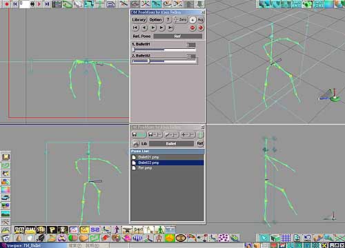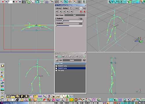 記錄動畫6. 從動作的頻道列中調整滑桿,動作會由參考動作變成您所指定頻道的動作,0 為不加入此動作,100 為完全動作。當然啦!1~99 或超過 100~200 的變化,您都可以微調。如圖 6 及 7,分別為 Ballet01 及 Ballet02。