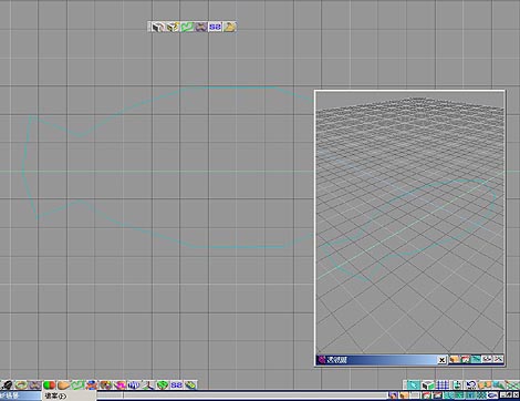 按下空白鍵取消點移動功能,接著我們要做出魚的嘴巴'眼睛'魚鰓'魚尾'背鰭'胸鰭和腹鰭. step7關閉剛才的左視圖子視窗,再來將母視窗設為線框顯示模式,選取多邊形繪製工具,將魚嘴的部分,如圖15連接以做出兩條線出來.