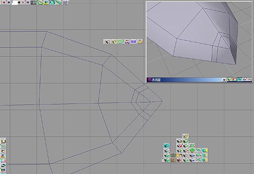 然後如圖16選取嘴尖處的兩個頂點,以點移動功能將點移往魚身內如圖,即為嘴部凹陷的造型,此處需注意到,點的移動在z軸上是不動的.