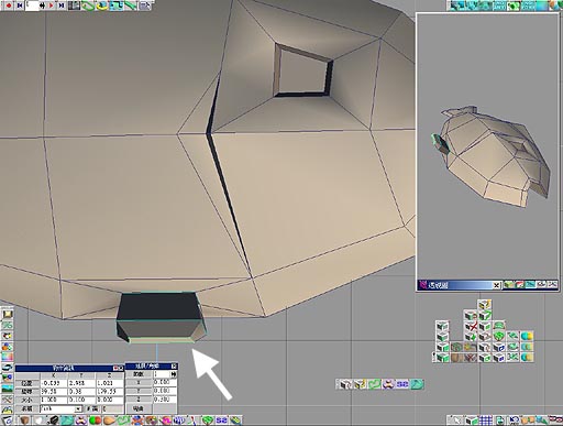 step15當延展的面於選取狀態時,執行延展的功能,於參數面板中的Z軸欄位輸入數值0.7,並將這個面縮放的比原來被延展出來的面大一點點. 可以使用物件資訊面板來作調整,例如在X的數值後面打上+0.2使數值變為1.4,Y的數值後面打上+0.05使數值變為0.3. step16再執行一次延展的功能,再次呼叫出參數面板,並在Z欄位中輸入0.3,而請於物件資訊面板中,這次我們可以看見大小欄位的數值比原來被延展的面來的大,這是為TS會在延展中自動沿續上次的執行動作,而將這個面縮放的比前一個面大. 將X和Y的大小值,分別輸入或以運算式的方式輸入,將面縮小為如圖33所示.並按下空白鍵取消延展的功能.