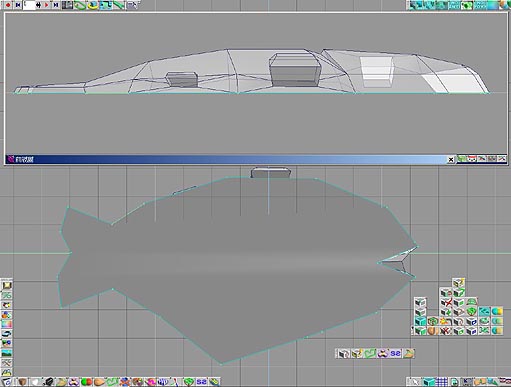 這樣的生成編輯模式,同樣可以運用於其他有機生物的建模,如各類動物或怪獸,與人物等等... step18此時,我們將這條魚賦予它另外一半的軀殼吧! 將上視圖母視窗更改為底視圖,您可以按一下鍵盤上頭的數字按鍵7,在您母視窗為作用視窗的情形下,即可更改為底視圖視窗. 選取如圖35所示的這一個面.