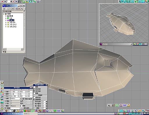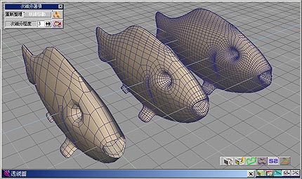 我們可以在透視圖子視窗看出來.接著按下執行次細分物件的功能,即可以看見魚兒經過次細分之後的平滑外觀了如圖38.