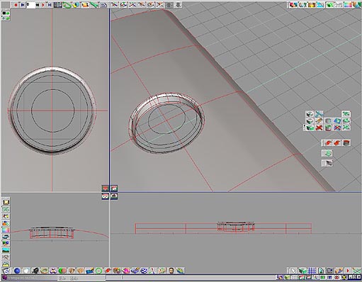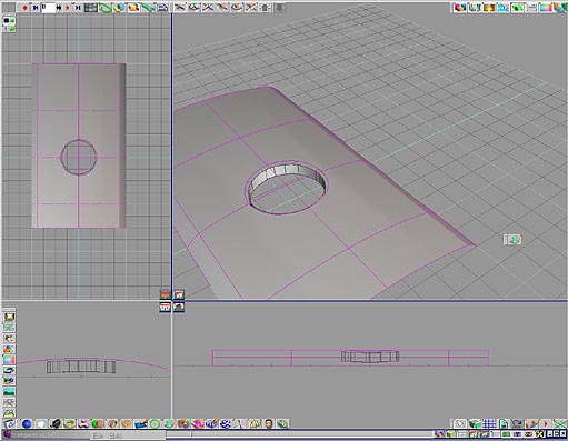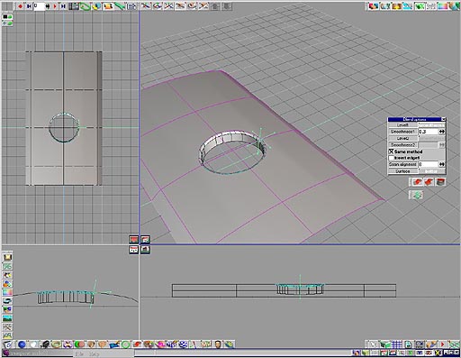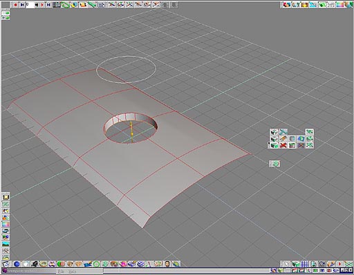 3.truespace 可以在執行 nurbs 曲面裁剪功能的時候,使用其附屬的浮動工具列,依照模型的需求選擇反向裁剪的功能如圖 11.