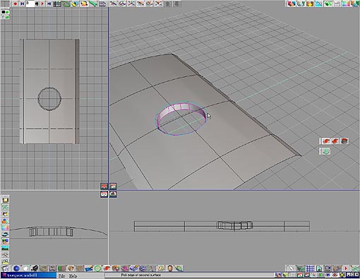 5. 在過來,執行 bland surface 的工具,以滑鼠點按其工具圖示之後,將滑鼠游標移動至兩個欲接合曲面的曲面邊線上(游標靠近邊線會自動反白),各點按一次即可接合表面如圖 14.