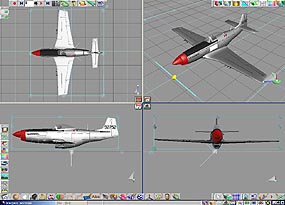 trueSpace5 也加入了 4 格視窗的顯示模式,如圖 2。