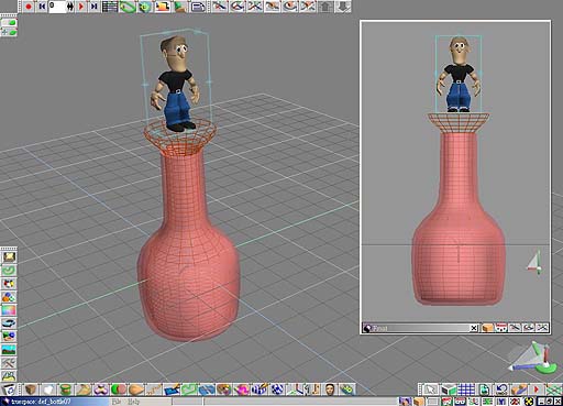 16. 調整好造型後,加入一個人物模型。此模型的軸心最好是在模型的中心點,並將此物件移到瓶口的位置,如圖 16。