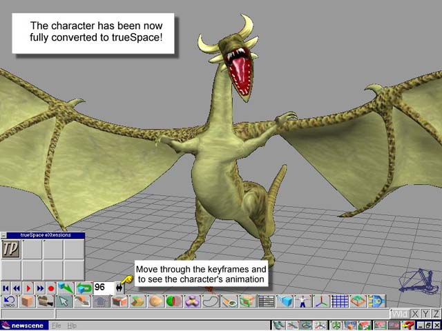此轉換過程會將 Poser 所匯出的 Wavefront OBJ 序列檔案,轉換 (melt) 為 trueSpace 中的動畫。