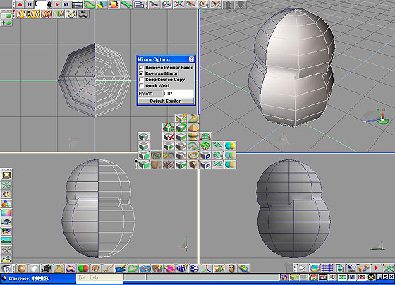 3. 對鏡射模型按鈕按下右鍵,叫出鏡射選項對話方塊,將Reverse Mirror打勾,這樣鏡射出來的模型才是我們要的位置,接著按下鏡射模型按鈕,模型的右半邊便出現了,如圖。