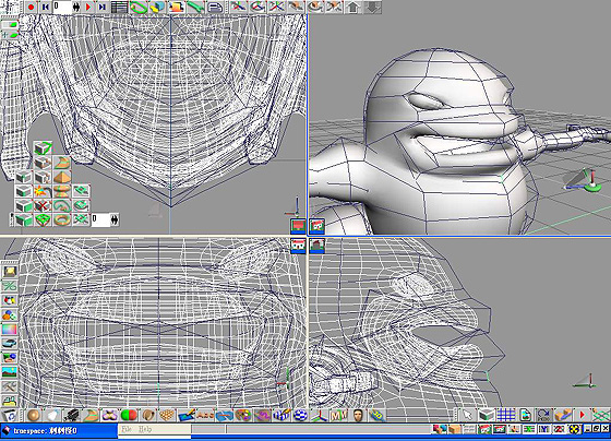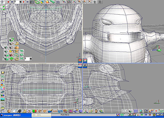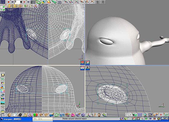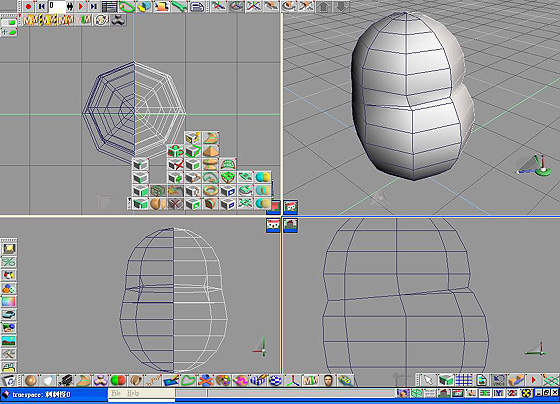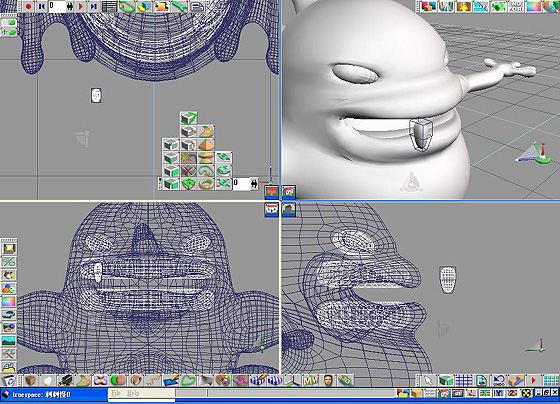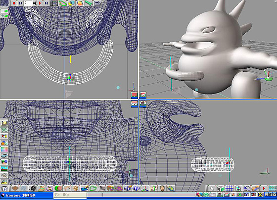 9. 接著用點編輯,將嘴形稍微做一下調整,選擇嘴部的面,將它延展出來一點點就好,並且將它縮小,接著再向內延展,做出口腔的部分,如圖。