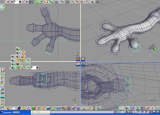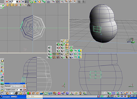 4. 因為這球體的表面比較大,所以按下新增邊線按鈕,在手部的地方將一個面切割成兩塊,按下四角等分物件按鈕,讓面分成四小塊,讓之後的手臂能有更多的控制點來做細部的調整,如圖。