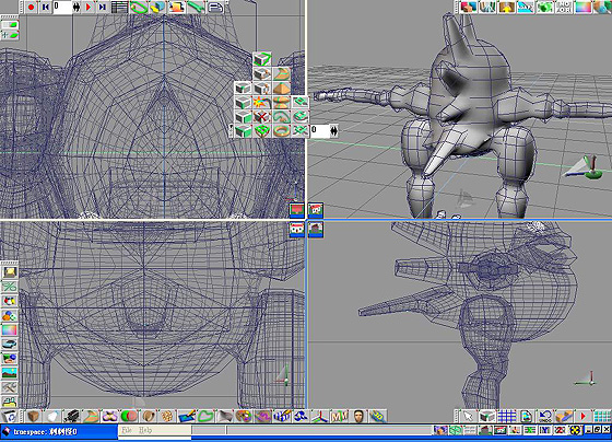 5. 按下延展按鈕,將手臂的部分延展出去,並配合手臂的粗細大小,將延展出的面做縮放、旋轉或移動的動作,同時你也可以按下次細分物件按鈕,將模型做次細分的處理,這邊的部分則是依照個人喜好,並不刻意要求要像我一樣,完成後如圖7