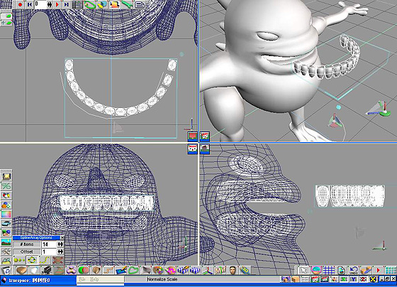 15. 用新增曲線,畫一條和牙齦同樣曲度的曲線,選擇牙齒,按下spline array of objects按鈕,再選擇曲線,這樣一排牙齒便完成了,若牙齒數量過多,可以對spline