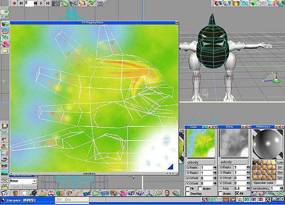 Mapping Editor,就會出現UV Mapping Edito選項,再按下選項裡的Export bitmap,將圖輸出成單張圖檔,再叫進平面影像處理軟體做材質