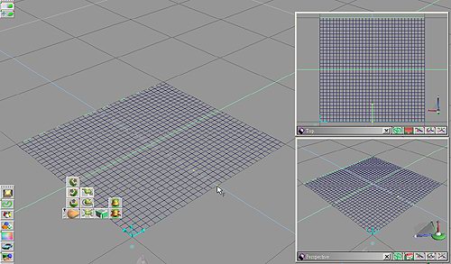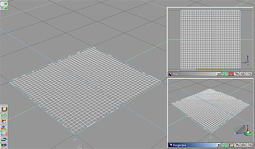 操作步驟1. 加入一平面,並使用四角等分物件 (Quad Divide) 工具加以細分,如圖 1。因為我們必須搭配動畫的記錄,所以我們必須先設定一個關鍵畫格,本處設定為 30。